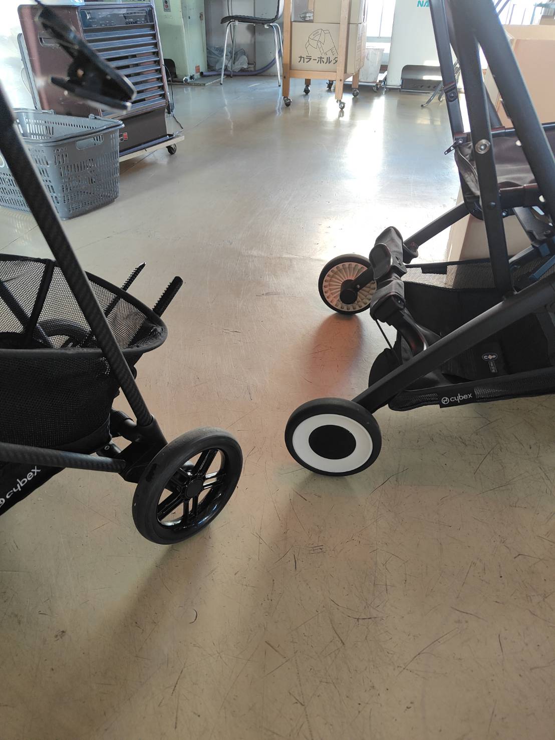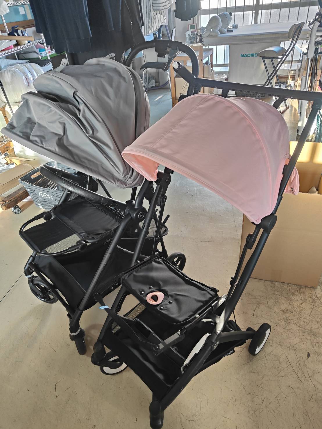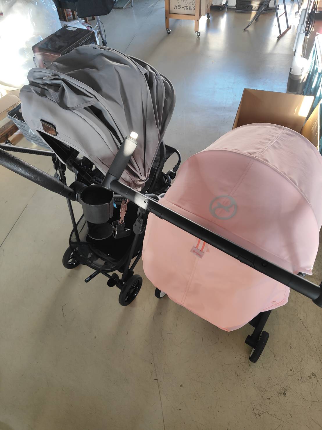 今、当店の作業場には、おしゃれなパパママから絶大な支持を集めるベビーギアブランド「サイベックス(CYBEX)」のベビーカーがちょうど2台、並んで入荷しています。