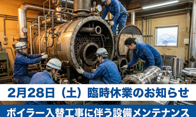 今回の休業は、当店の心臓部とも言える「ボイラー」の入れ替え工事を行うためです。